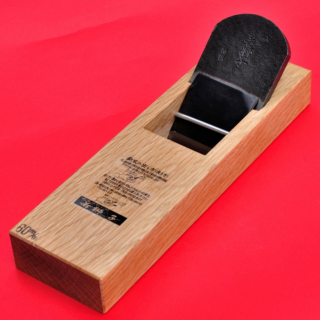 Cepillo japonés para madera Wakajishi 60 mm. Hoja : 60 mmAnchura de corte : acerca de 50 mmGrosor de la hoja : cerca de 8 mmTamaño : 260 mm x 75 mm x 70 mm (incluyendo la hoja).Peso : alrededor de 1000 gramos La hoja está hecha de acero al carbono. Hecho en Japón.